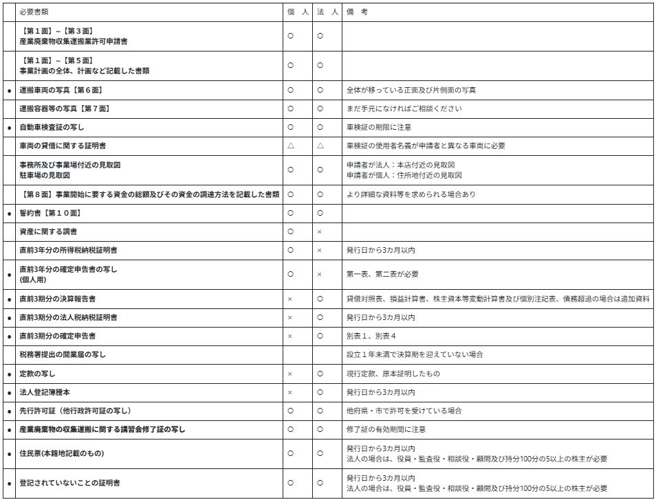産廃許可(積替え・保管を含まない)新規申請書類一覧